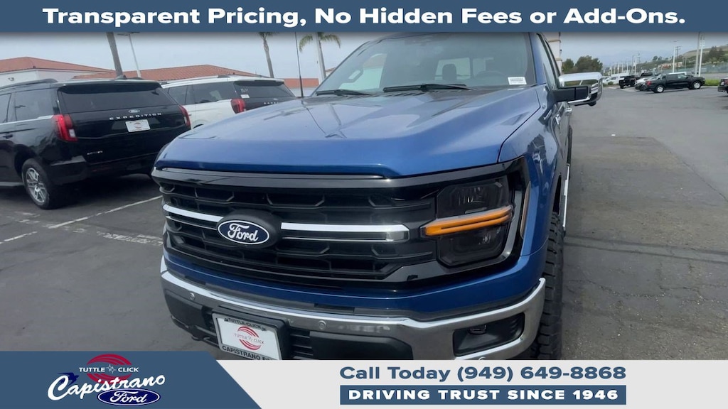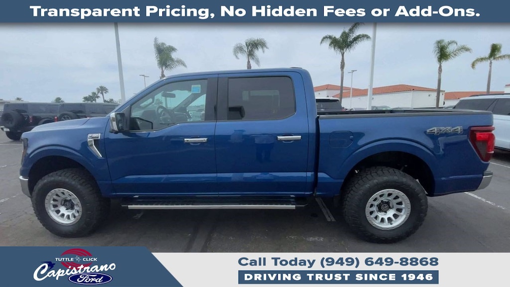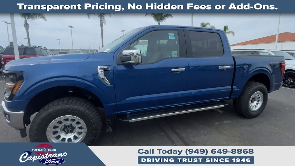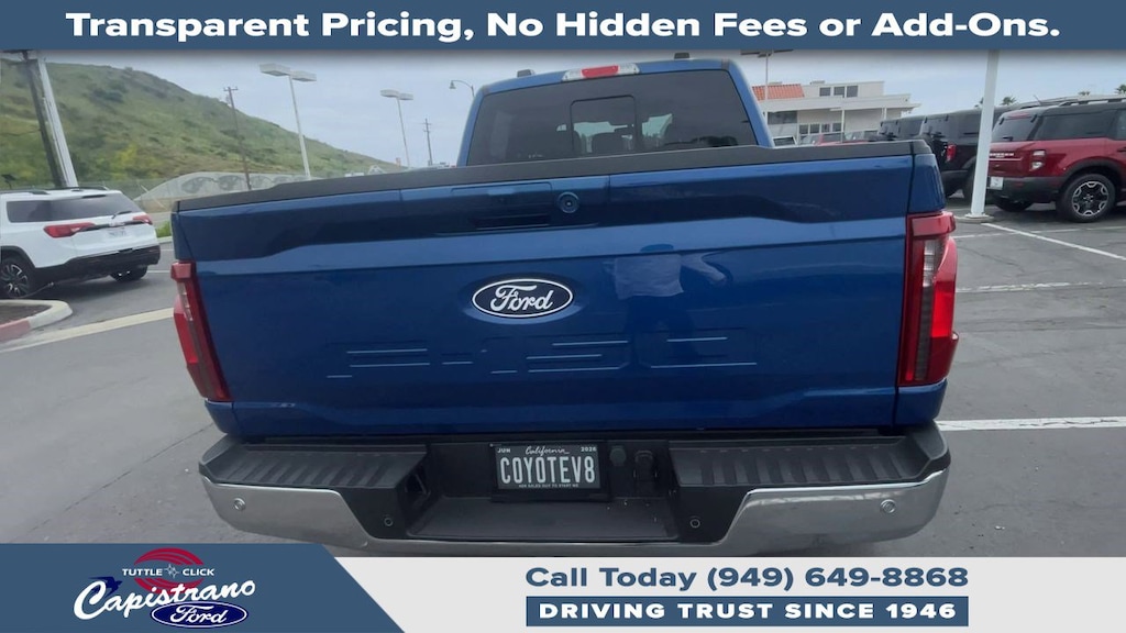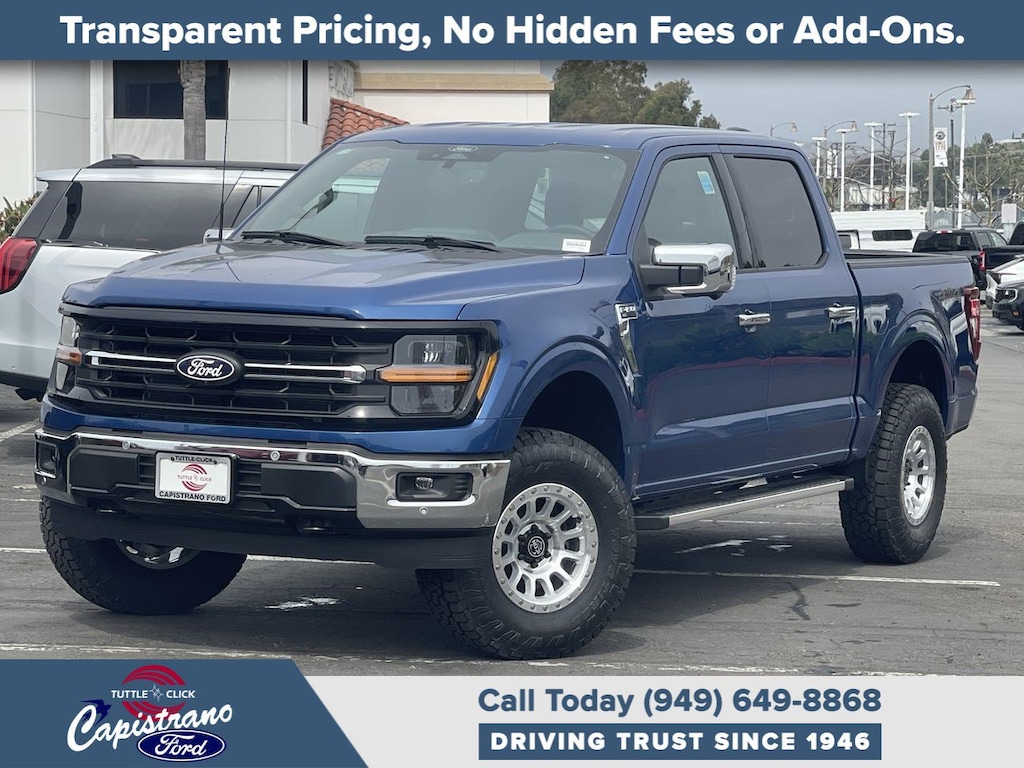 EQUIPMENT GROUP 302A MID Chrome Door & Tailgate Handles, Wrapped Steering Wheel, Connected Navigation, 1-year trial, Navigation services require SYNC4 and FordPass Connect (optional on select vehicles), complimentary connect service and the FordPass app (see FordPass terms for details), Eligible vehicles receive a complimentary 1-year trial of navigation services that begins on the new vehicle warranty start date, Customers must unlock the navigation service trial by activating the eligible vehicle w/a FordPass member account, If not subscribed by the end of the complimentary period, the connected navigation service will revert to a moving-map and active routing will no longer be available, Connected service and features depend on compatible AT&T network availability, Evolving, ENGINE: 5.0L V8 auto start-stop technology, 3.31 Axle Ratio, GVWR: 7,100 lbs Payload Package, BED UTILITY PACKAGE Tailgate Step w/Tailgate Work Surface, LED Box Lighting, 4 Pickup Box Tie-Down Plates, TRANSMISSION: ELECTRONIC 10-SPEED AUTOMATIC SelectShift w/progressive range select and selectable drive modes: normal, ECO, sport, tow/haul, slippery, deep snow/sand and mud/rut (STD). Ford XLT with Atlas Blue exterior and Smoked Truffle interior features a 8 Cylinder Engine with 325 HP at 5000 RPM*. Approx. Original Base Sticker Price: $73,500*.
