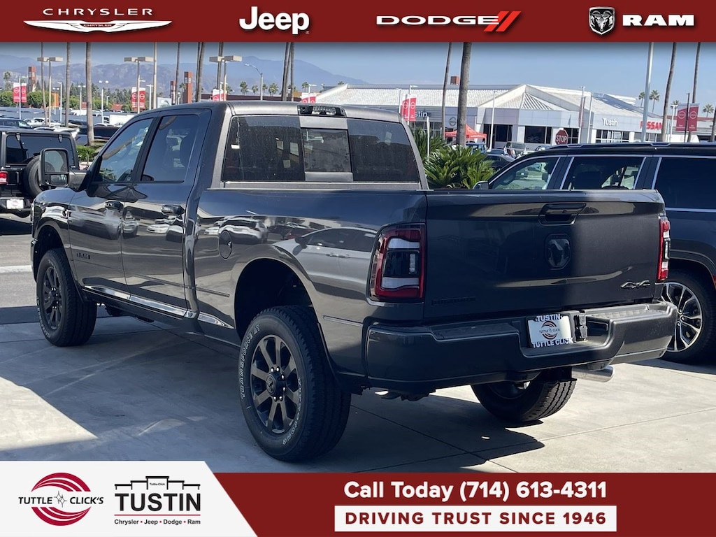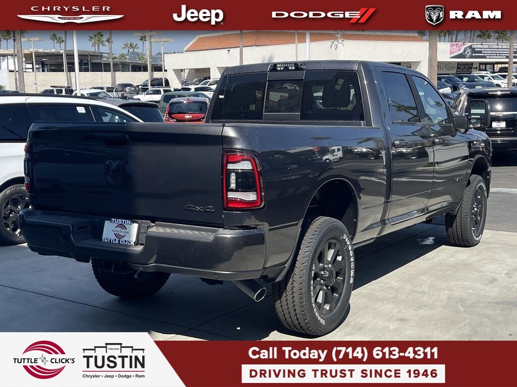 ENGINE: 6.7L I6 CUMMINS TURBO DIESEL Selective Catalytic Reduction (Urea), Dual 730 Amp Maintenance Free Batteries, Cummins Turbo Diesel Badge, Heavy Duty Engine Cooling, Tow Hooks, Diesel Exhaust Brake, Supplemental Heater, Front Bumper Sight Shields, Capless Fuel Fill w/o Discriminator, NIGHT EDITION Black Ram Head Tailgate Badge, Wheels: 20 x 8.0 Black Painted Aluminum, Black Wheel Center Hub, Black Headlamp Bezels, Body Color Door Handles, Painted Front Bumper, Painted Rear Bumper, Gloss Black Grille Nostrils/Mic, Tires: LT285/60R20E OWL On/Off Road, Black Exterior Truck Badging, Body Color Grille Surround, Black Interior Accents, Black Tail Lamp Bezels, ParkSense Front/Rear Park Assist System, LEVEL 2 EQUIPMENT GROUP Rear Window Defroster, Blind Spot & Cross Path Detection, LED Tail Lamps, Power Adjustable Pedals, Leather Wrapped Steering Wheel, Rear Power Sliding Window, Rear Dome w/On/Off Switch Lamp, Front Fog Lamps, Glove Box Lamp, Auto Power-Folding Mirrors, Footwell Courtesy Lamp, Media Hub w/2 Charge Only USBs, Heated Front Seats, Mirror Running Lights, Heated Steering Wheel, Foam Bottle Insert (Door Trim Panel), Wheels: 18 x 8.0 Polished Aluminum, Dampened Tailgate, Security Alarm, Big Horn IP Badge, Power Adjustable Convex Aux Mirrors, Forward & Reverse Utility Lights, Locking Lower Glove Box, Remote Start System, Radio: Uconnect 5 Nav w/12.0 Display, Google Android Auto®, Off-Road Information Pages, Selectable Tire Fill Alert, Trailer Tow Pages, Disassociated, TOWING TECHNOLOGY GROUP CTR Stop Lamp w/Cargo View Camera, Surround View Camera System, Blind Spot & Cross Path Detection, LED Tail Lamps, Trailer Reverse Guidance, 9 ALPINE SPEAKERS W/SUBWOOFER, ANTI-SPIN DIFFERENTIAL REAR AXLE, BLACK, PREMIUM CLOTH BUCKET SEATS Bucket Seats, Manual Adjust 4-Way Front Passenger Seat, Power Adjust 8-Way Driver Seat, Rear 60/40 Folding Seat, Front Seat Back Map Pockets, Power 2-Way Driver Lumbar Adjust, Full Length Upgraded Floor Console, TRANSMISSION: 6-SPEED AUTOMATIC (68RFE).