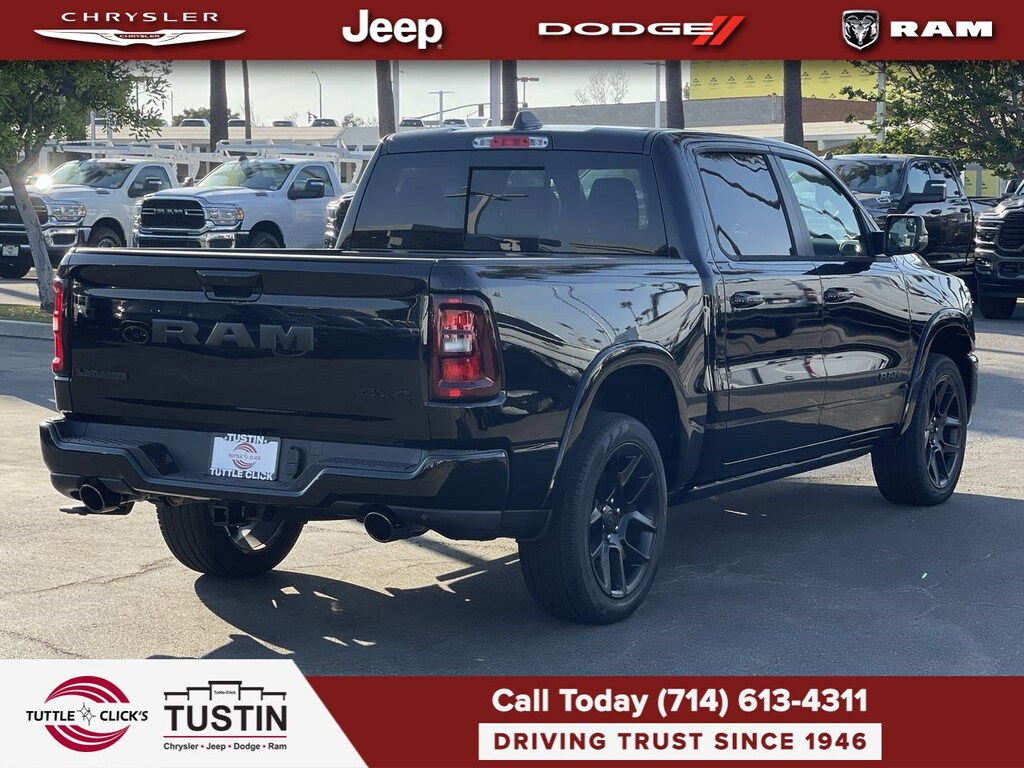 NIGHT EDITION Black Headlamp Bezels, Wheels: 22 x 9 Forged Aluminum, Tires: 285/45R22XL BSW All Season, Pirelli Brand Tires, Proximity Approach/Departure Lamps, Anti-Spin Differential Rear Axle, Accent Color Door Handles, Black Interior Accents, Body Color Front Bumper, Grille Surround 3 Black Texture 2 Black, Body Color Rear Bumper w/Step Pads, RAM Grille Badge - Black, Black Painted Exterior Mirrors Caps, Exterior Mirrors Approach Lamps, Accent Color Premium Power Mirrors, Sport Performance Hood, Black Exterior Truck Badging, Accent Color Tailgate Handle, Dual Exhaust w/Black Tips, Black Tail Lamp Bezels, LARAMIE LEVEL 2 EQUIPMENT GROUP Rain Sensitive Windshield Wipers, Front Passenger Interactive Display, Secondary Active Grille Shutters, Smartphone As A Key Capable, 14.4 Touchscreen Display, Dual Wireless Charging Pad, Radio: Uconnect 5 Nav w/14.4 Display, harman/kardon® 19 Speaker Premium Sound, Cluster 12 TFT Color Display, Power Tailgate, DUAL-PANE PANORAMIC SUNROOF LED Dome/Reading Lamp, Dome Dual LED Reading Lamp, POWER DEPLOYABLE RUNNING BOARDS, TRANSMISSION: 8-SPEED AUTOMATIC (8HP75) (STD), ENGINE: 3.0L I6 HURRICANE SO TWIN TURBO ESS (STD).